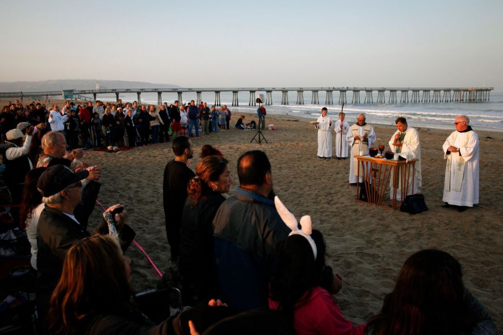AN EASTER SUNRISE SERVICE DRAWS A LARGE CROWD